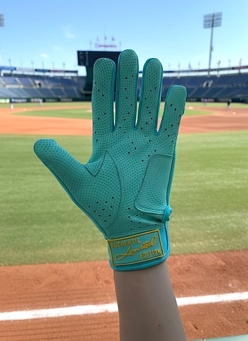 手のひら部分には、汗をかいたり濡れたりした状態でも優れたコントロールを実現する特殊なグリップ素材が採用されています。安定した力強いスイングをサポートし、ミスヒットを防ぎます。